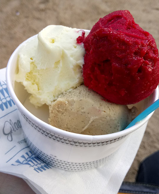 胡椒覆盆子就很水果,霜感較重也是很美味,吃到後來三種混合在一起也不會突兀~這家是此次歐洲行吃到的第一名冰淇淋之一,另一家並列第一的之後才會寫到。平常我是不會說必吃必買必怎樣的,但在我心中這家真的必吃啊