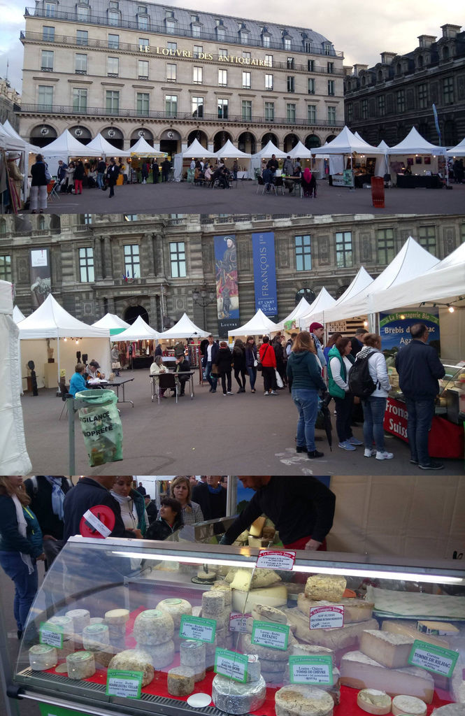 吃飽後搭公車要往巴黎鐵塔方向 (終於),結果在羅浮宮附近廣場看到了一個市集,反正是用 NAVIGO 可以隨意搭車就跳車下來逛了。