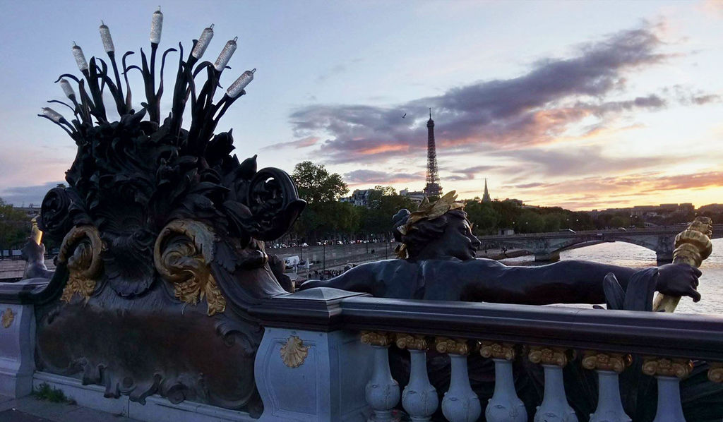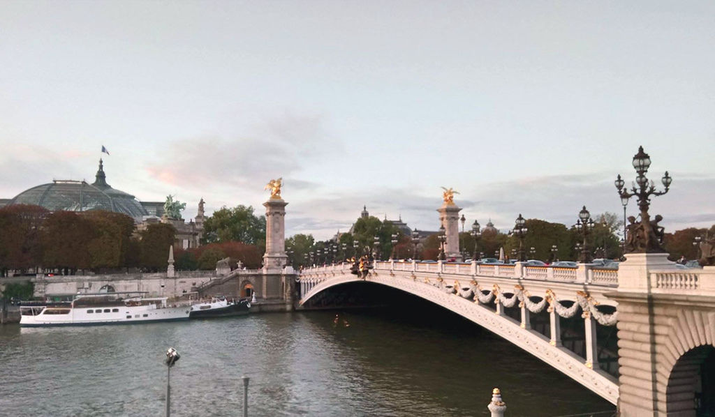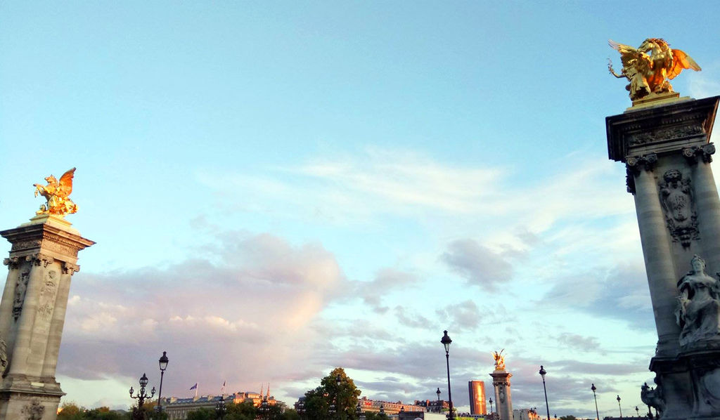 在巴黎大皇宮下車後走到美麗的亞歷山大三世橋來。