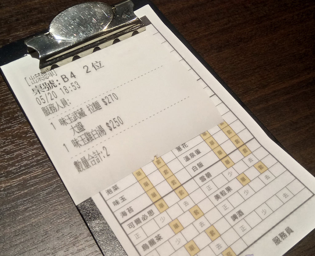 我們點了味玉武藏跟味玉雞白湯各一,本來有點想嘗試明太子叉燒飯但怕吃不完,也許下次吧。