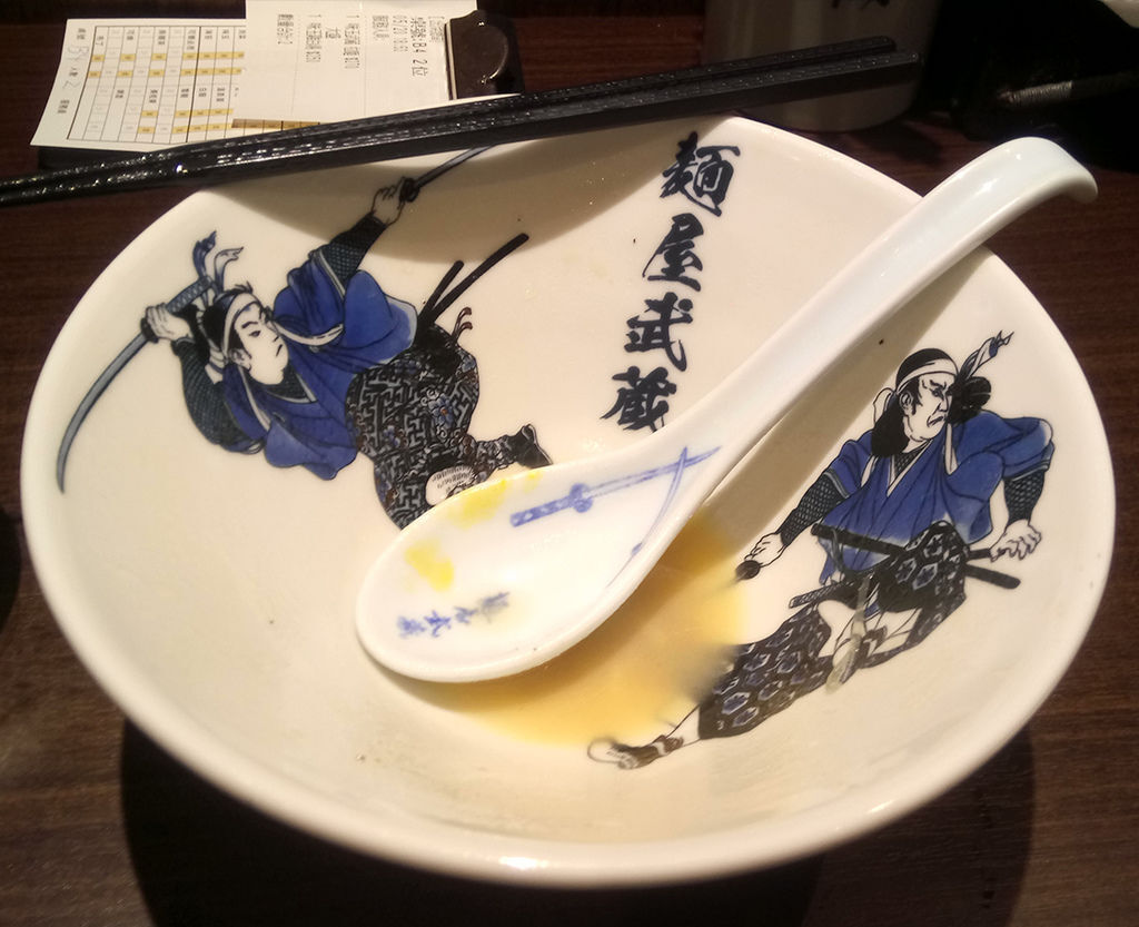 順利完食,碗跟湯杓都有著麵屋武藏的字樣。