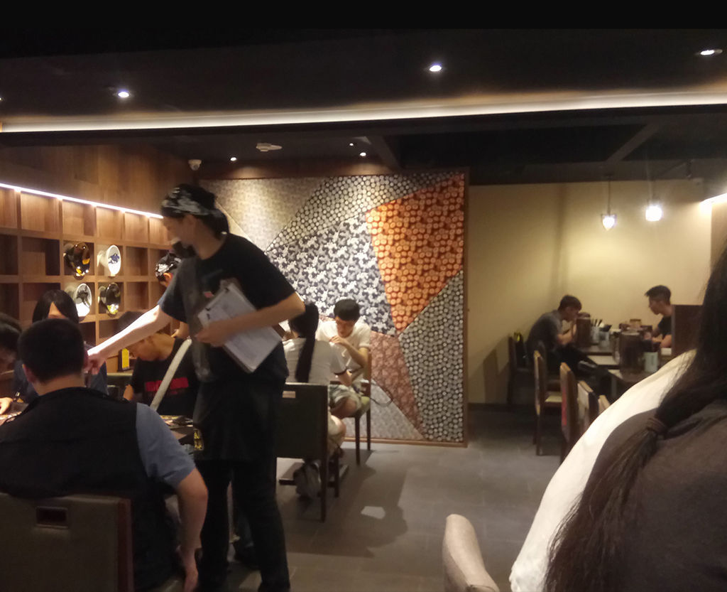店內的裝潢也算有風格,牆上鑲了好幾款麵屋武藏的特色麵碗。