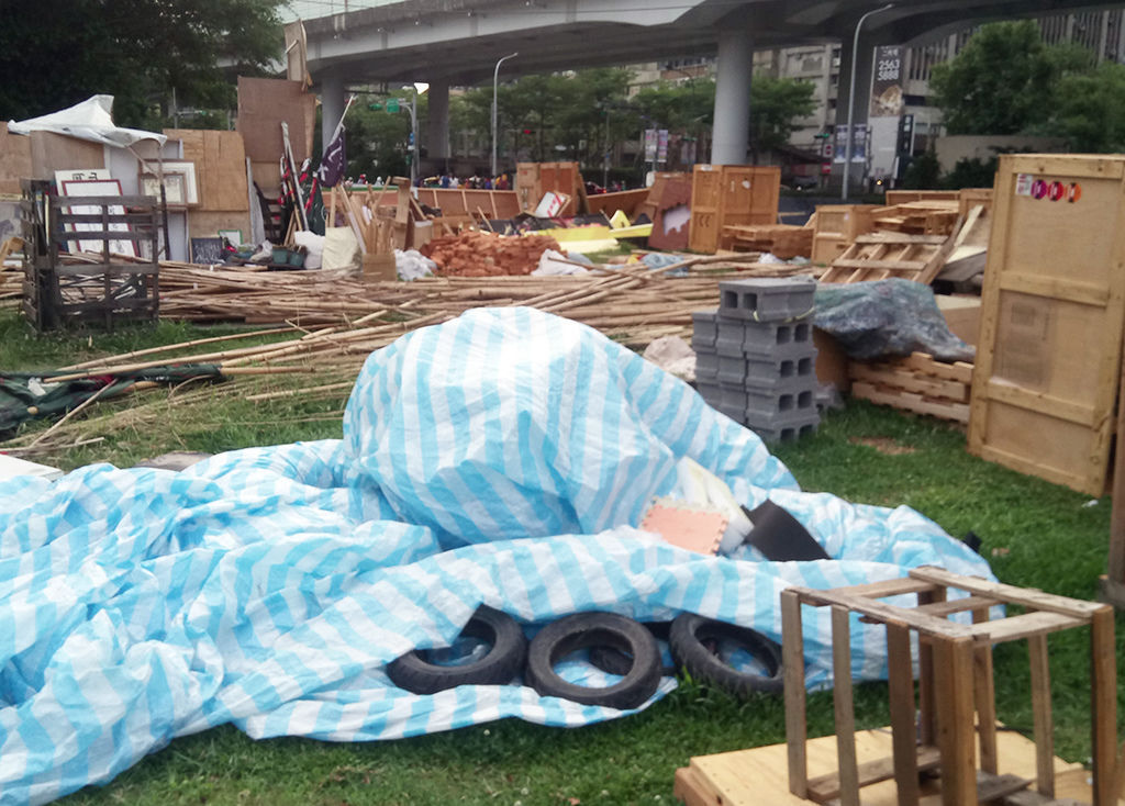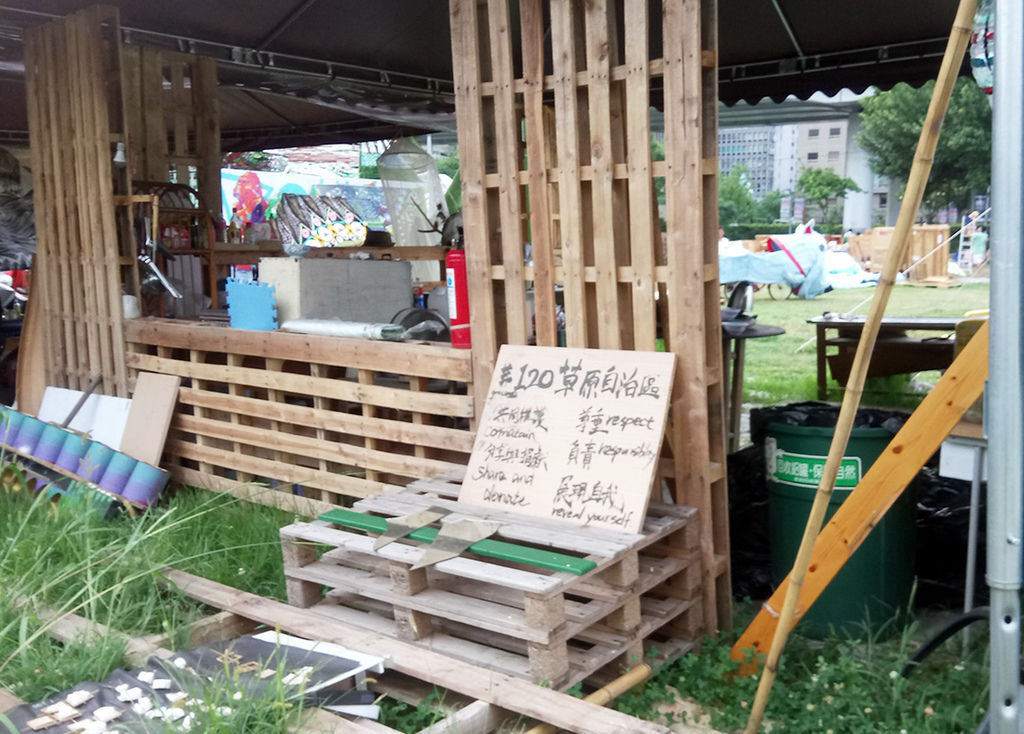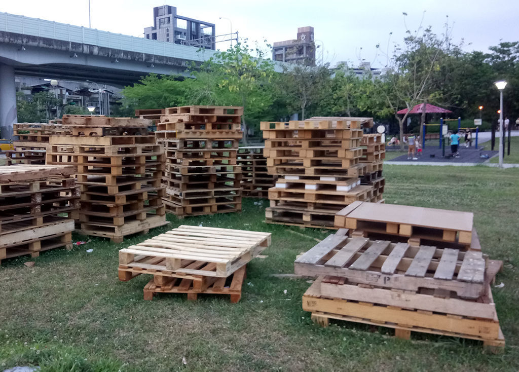 首先看到的是滿滿的棧板,想必是「草民」們拿來建造房舍的吧。