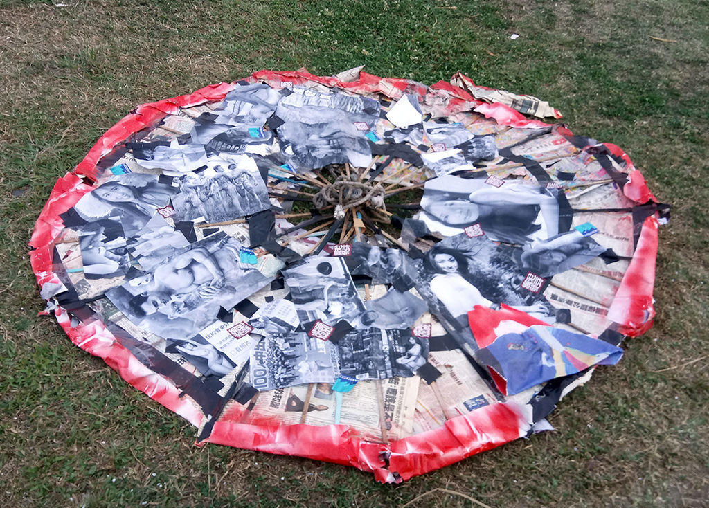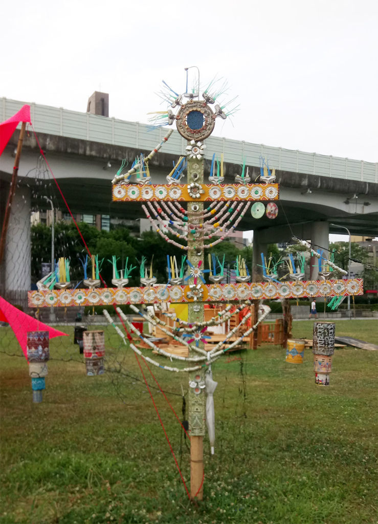 還看到了類似薩滿圖騰柱的裝置藝術,不過是原住民族風格的,可惜下方沒擺個作品介紹只掛了把傘。