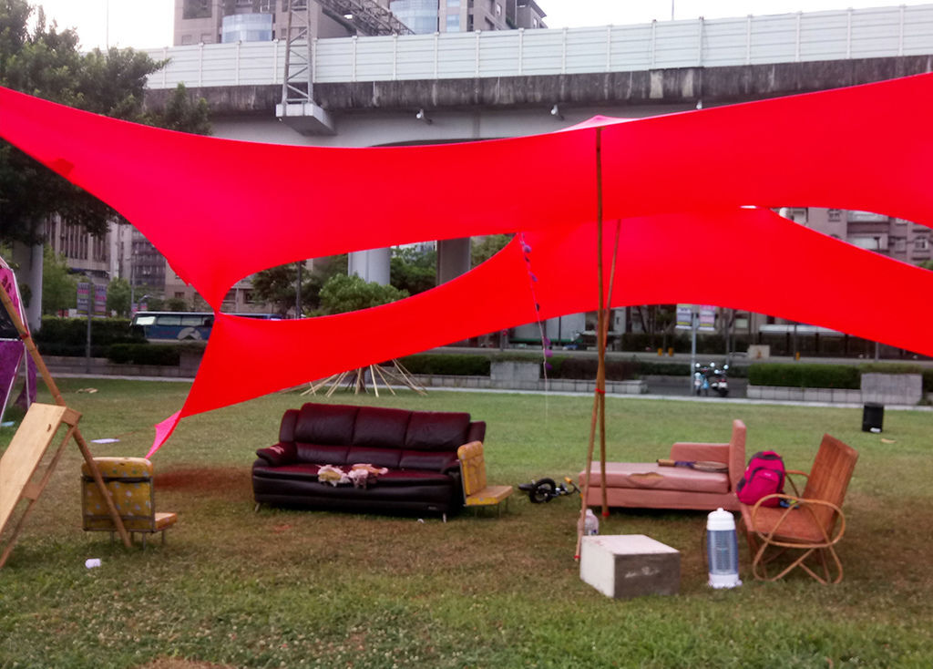 紅色的大布幔很搶眼,天氣舒服時在下方座位區吹風看書喝啤酒應該很是不錯。