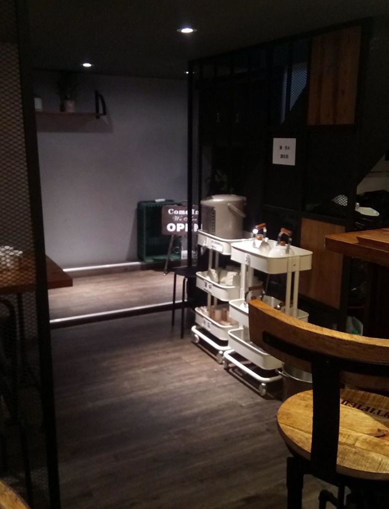 比起拉麵店其實裝潢擺飾更像工業風咖啡廳或早午餐店,推車上有水跟餐具可自取。