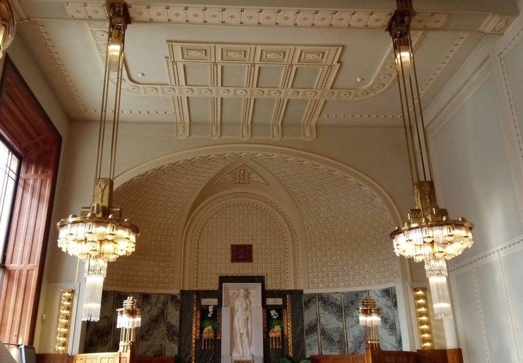 室內美麗的裝潢,兩盞金色吊燈無比華麗,搭配象牙白的雕像與牆面變得優雅不會太過。
