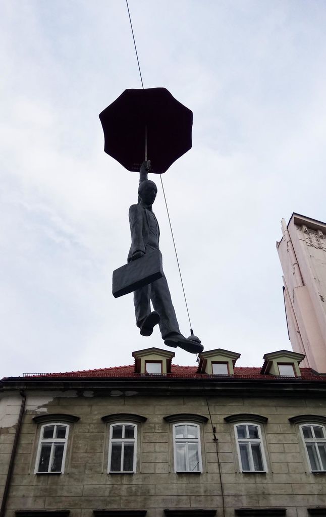 接著搭車前往Národní třída站,尋找位於OC Quadrio百貨後方的卡夫卡雕像。雖然跟卡夫卡不熟但這雕像的旋轉跟變形實在滿酷的,每一圈旋轉的變化都不同。