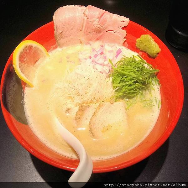 初訪吃的是濃厚雞吉君拉麵,湯很濃且燙口,有令人想到銀座篝的美味,雞叉燒有水準,然而豬叉燒清爽的調味特別好吃,不過到後來洋蔥味道有點重,最後湯沒喝完可惜了。