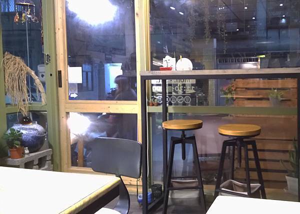 店門上方跟前方還有些植栽,營造出悠閒自在的氣氛。不過門口是台階,行動不便者或帶嬰兒車進出會比較麻煩,內部空間也不大,座位間沒什麼走道。
