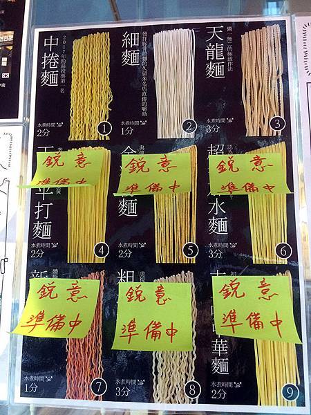 照片中麵的名稱都被遮住了,記得左下方是辣味的麵條,覺得很特別想嘗試。