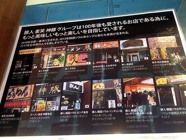 門口貼了所有分店的列表,日本有八家,意外地在韓國也有很多分店。