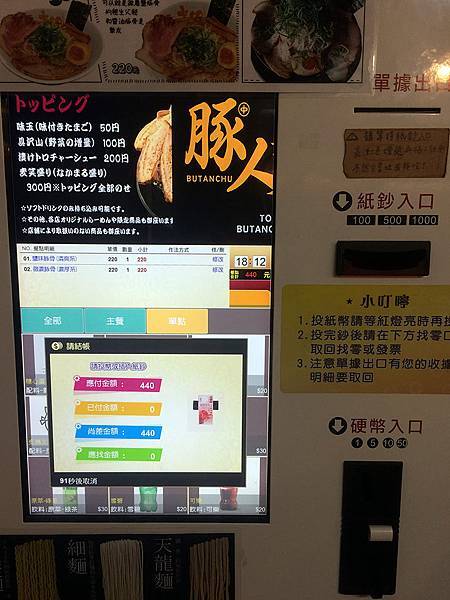 是可以使用500&1000元鈔票的點餐機,不用特地換一堆百元鈔來用餐還不錯。