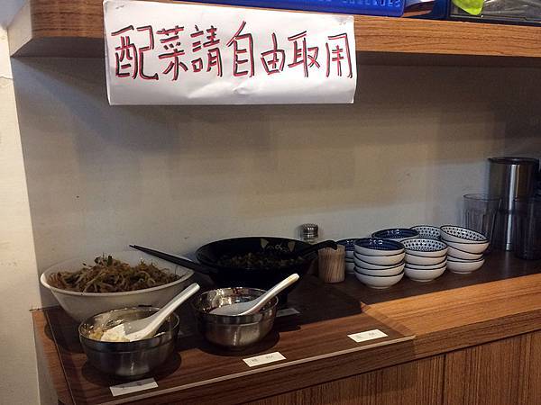 在吧台後方還有一個擺了配菜的櫃子都可自行取用,種類滿多的。