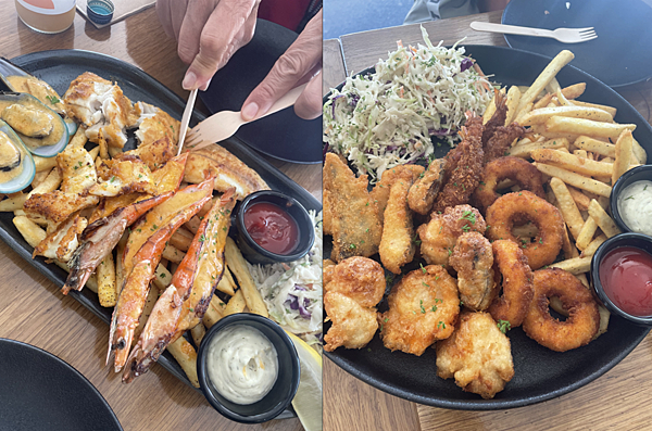 以前那邊有一家很有名的fish & chips炸魚薯條味道不差,也會買了到沙灘上吃,但已經歇業只能懷念。