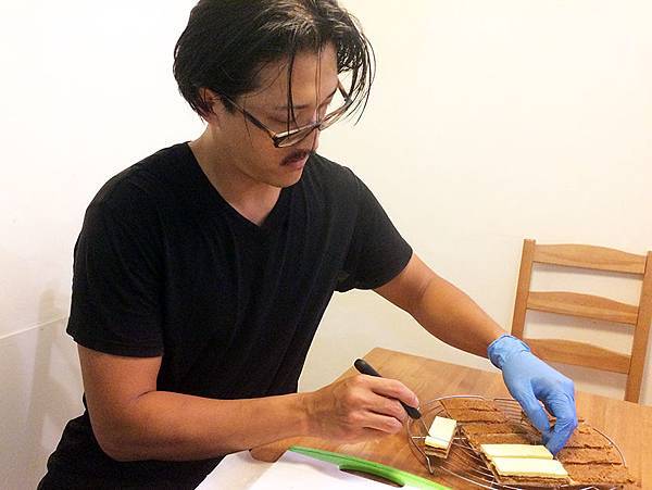 型男甜點師趕快把桌上整理出空間給我們內用。
