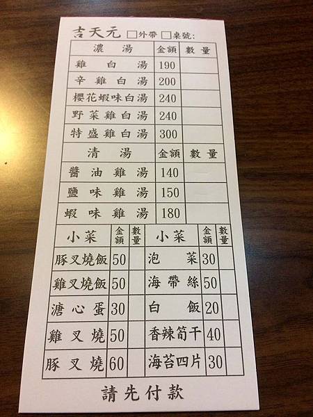 菜單很簡單,主要分成濃湯跟清湯兩種,價位從140~300。
