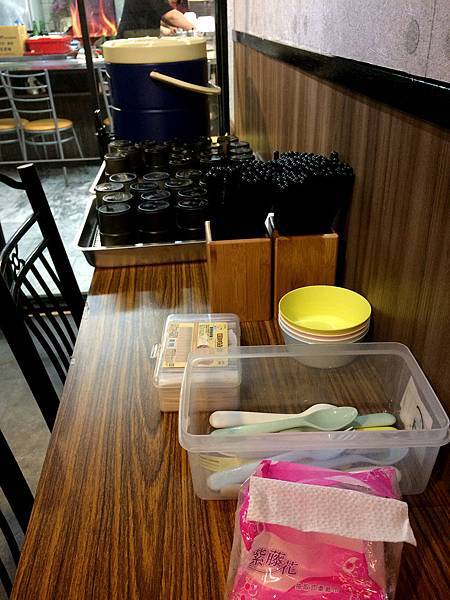 餐具跟水是自助式的,要自行從旁邊長桌取用。