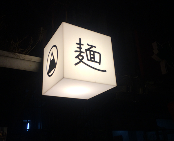 方形招牌滿可愛的,大大的麵字跟LOGO的富士山ICON。