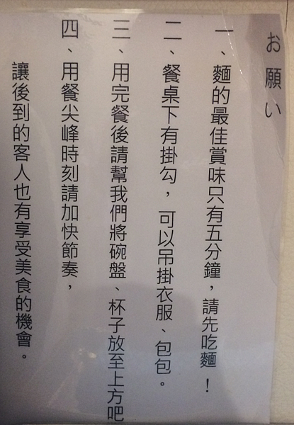 桌前也貼了注意事項小紙條,麵要迅速吃這個是常識沒問題,掛勾在桌底下別忘囉。