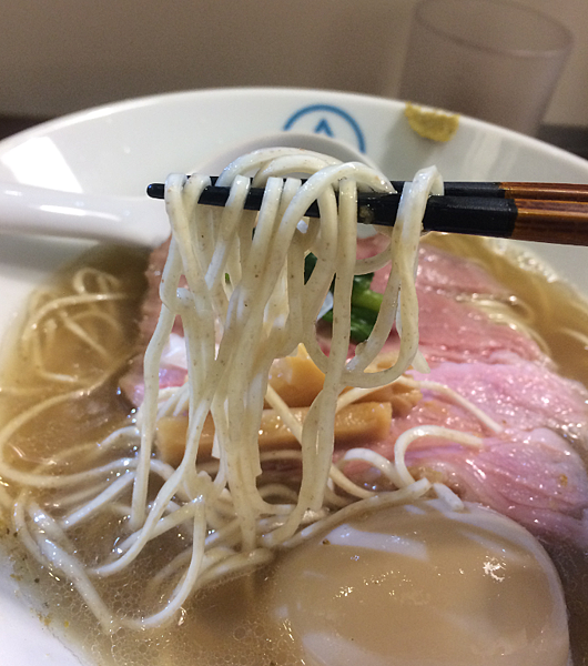 麵當然也要趕快享用(五分鐘!!),全粒粉麵條香味在鹽味湯中偏淡,雖是細直麵不過口感我滿喜歡的。
