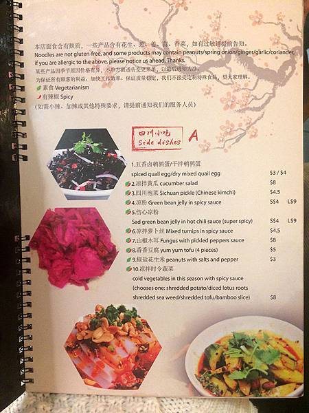 菜單第一頁果然是些四川小吃,我們點了涼拌黃瓜、涼粉跟山椒木耳。
