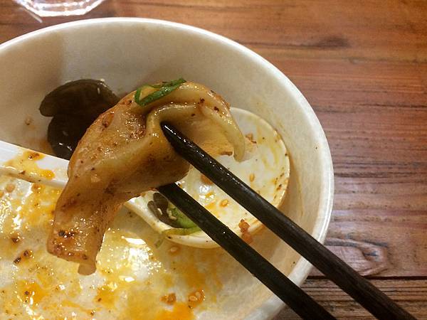 鐘水餃本人沒有特別大顆,口感還滿扎實,重點在於它的沾醬 (我說那個醬汁呢)