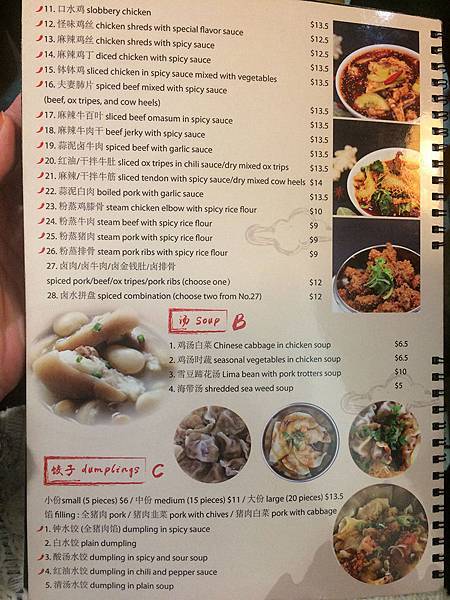 第二頁延續是川菜館比較常見的一些菜色如口水雞、夫妻肺片等。