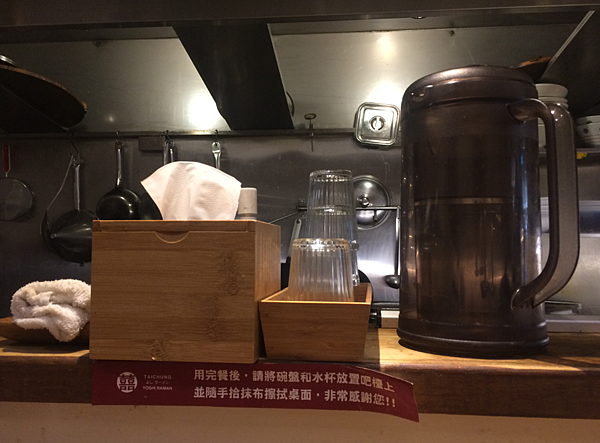 旁邊也有抹布供擦拭桌面用,滿多拉麵店都有這樣的做法,是很常見的。